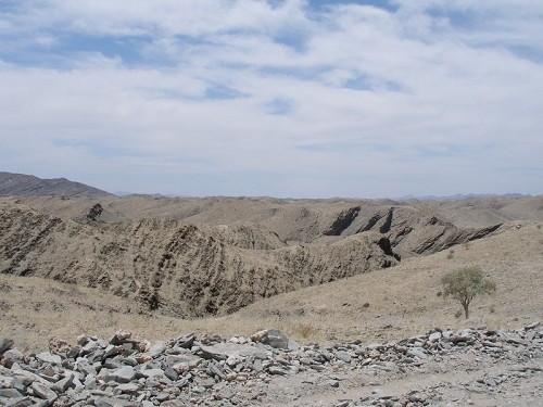 hinein. Wir mußten zuerst wieder die wellige Feinkies-Wüste