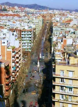 Ramblas (Einkaufstraßen) mit dem pulsierenden Leben und ein Blick über