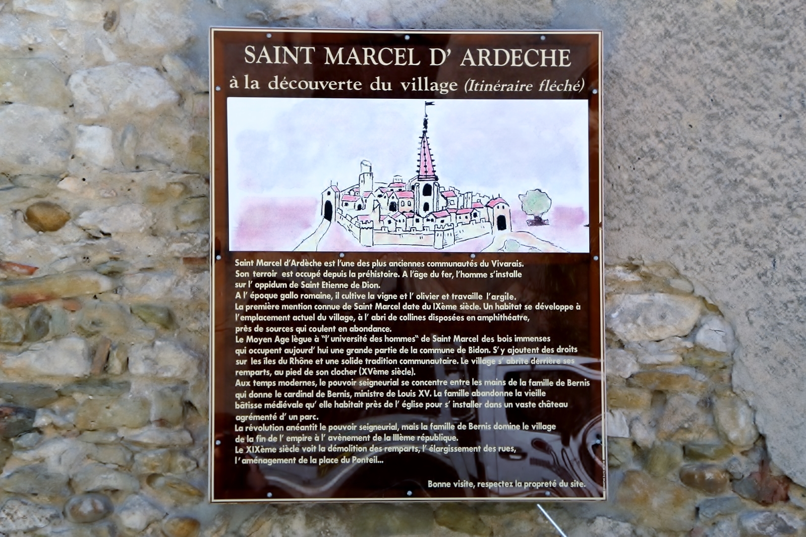 Saint-Marcel-d’Ardèche ist eine französische Gemeinde mit knapp 2500 Einwohnern im Département Ardèche. Es handelt sich um eine der ältesten Gemeinden in der Region Vivarais. Kopfsteinplaster und enge Gassen fand man im Ortskern überall. Die Gemeinde liegt auf einem Hochplateau zwischen den Städten Bourg-Saint-Andéol am Ufer der Rhône und Saint-Martin-d’Ardèche an der Ardèche. Mitten im Dorf befindet sich eine mittelalterliche Kirche. Der Glockenturm stammt aus dem 15. Jahrhundert. |