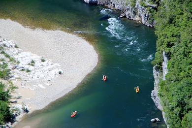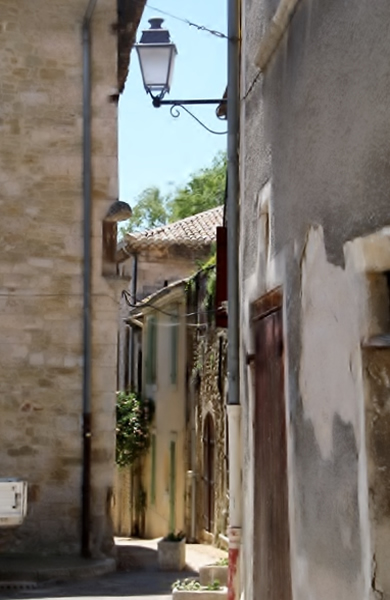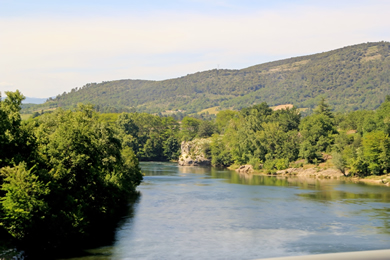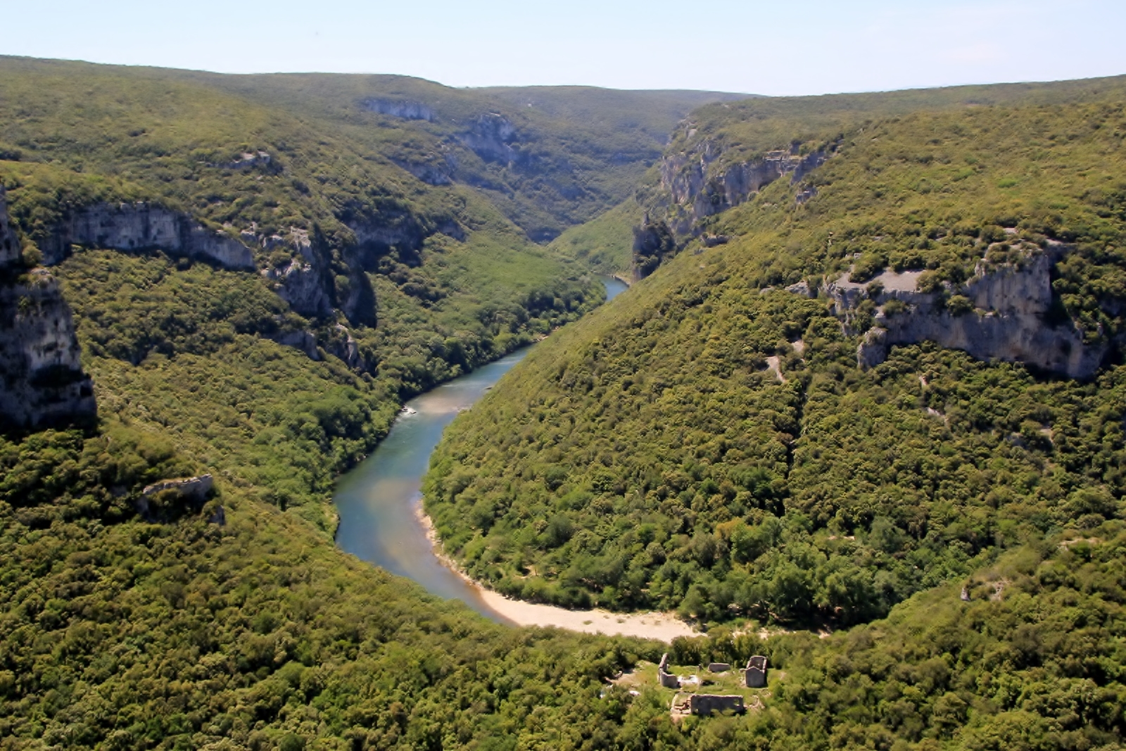 liegt auf einem Hügel zwischen dem westlich gelegenen Fluss Cèze und der östlich gelegenen Schlucht Gorges de l’Ardèche. |