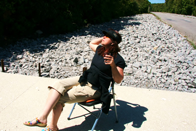 Von einem der vielen mobilem Pizzawagen kauften wir zum Mitnehmen. Zurück auf dem Campingplatz machten wir es uns vor dem Womo bequem. Bei einem kühlen Getränk und der leckeren Pizza beschlossen wir, das Gespann zu satteln und am nächsten Morgen gen Süden zu fahren. Es war klar, dass wir unsere urspünglich geplante Tour nicht mehr fahren konnten. Der Plan war nun: Tour Richtung Pyrenäen nach dem Motto der Weg ist das Ziel! Für die ersten Tage - bis seine Hand wieder funktionsfähig ist - wollte Jochen im Seitenwagen sitzen. |