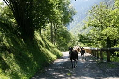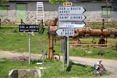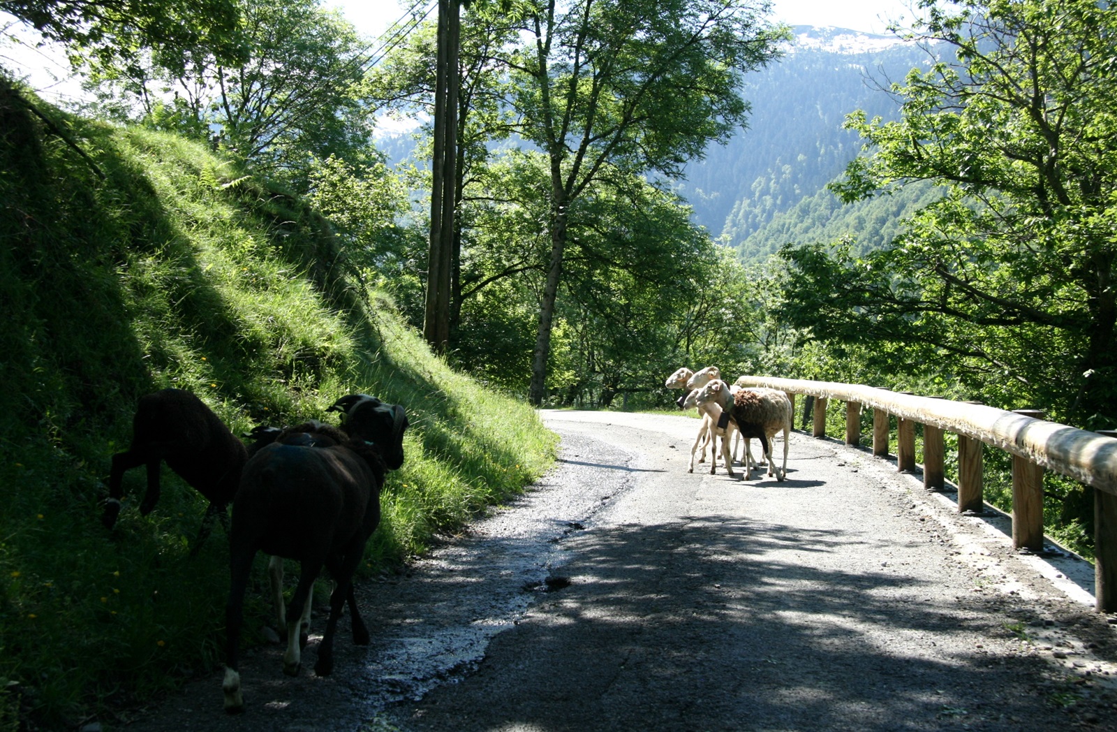 Das Dorf Melles, an der D44H ist der Start für eine tolle einsame Tour bis zum Col de Mente. Nach Melles immer wieder vierbeiniger Gegenverkehr - die Ziegen hatten gar keine Angst vor Fahrzeugen. Ab hier beginnt das Land der Bären..... ja die gibt es hier noch, aber es ist eher unwahrscheinlich einen zu Gesicht zu bekommen. |