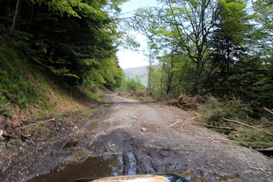 von der anderen Seite war die Straße gesperrt.... jetzt verstanden wir die Waldarbeiter. | |