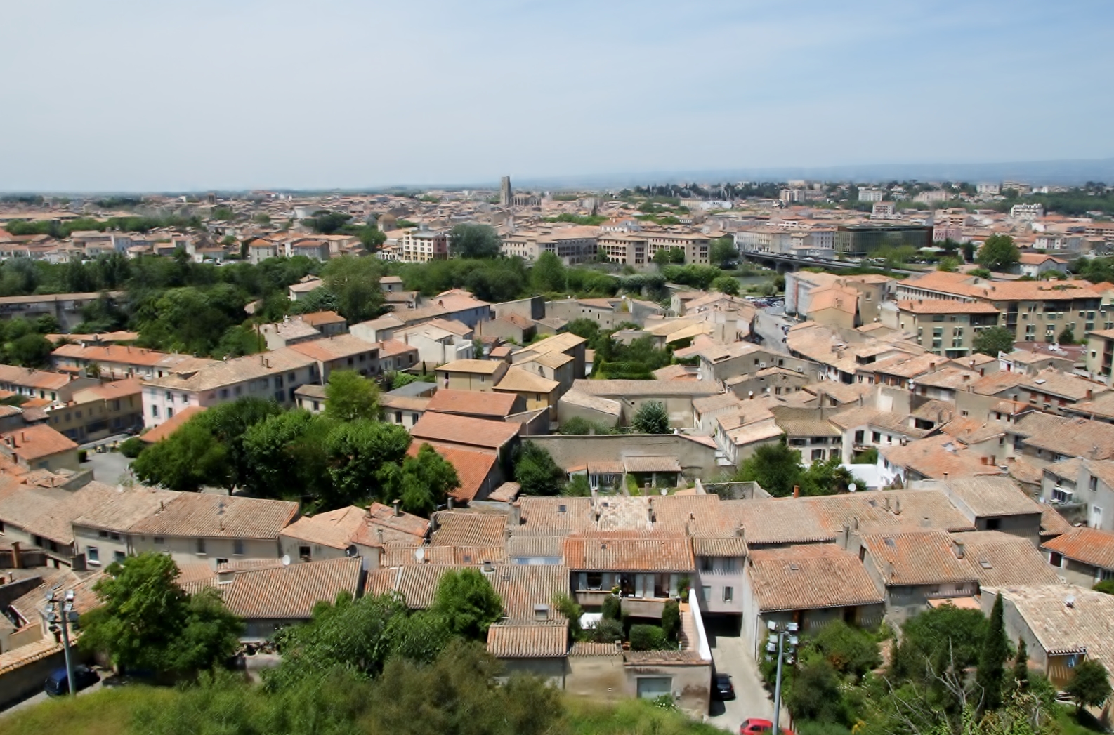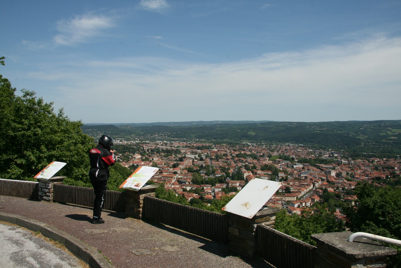 Blick auf Mazamet und die Montagne noir. Wir fuhren auf kleinen D-Straßen (D118; D101...) Richtung Carcassonne. Am Anfang war die Strecke noch bergig und kurvenreich. Doch je näher wir Carcasonne kamen, desto langweiliger wurde die Route. In Carcasonne angekommen, galt es wieder einen Parkplatz für das Gespann zu finden. Für die normalen Motorradparkplätze waren wir zu breit, die Autoparkplätze sehr teuer.... aber wir hatten dann doch noch ein gutes Plätzchen gefunden. |