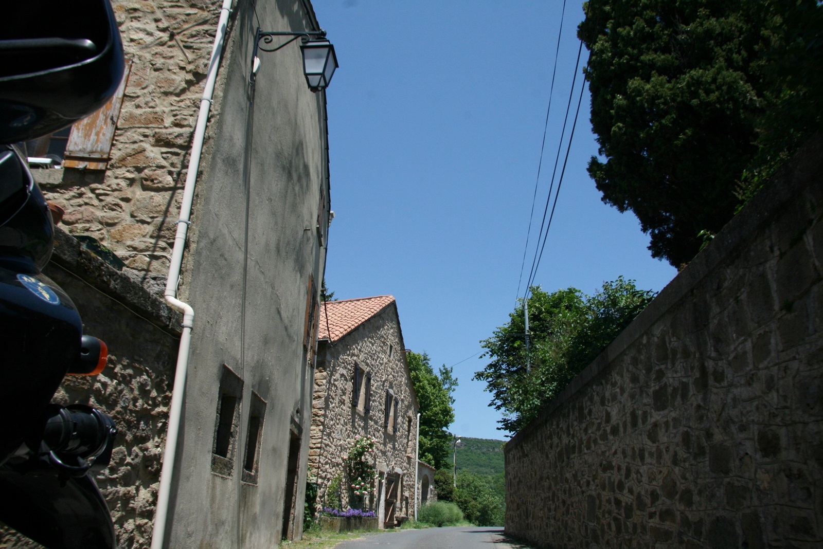 Straße gerade mal so breit wie das Gespann |