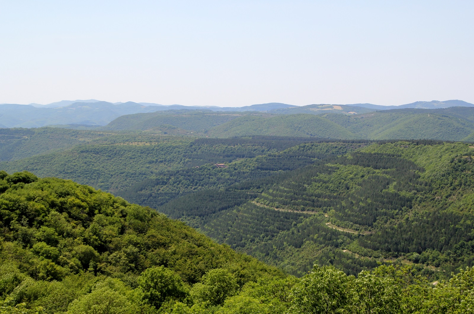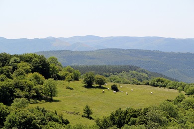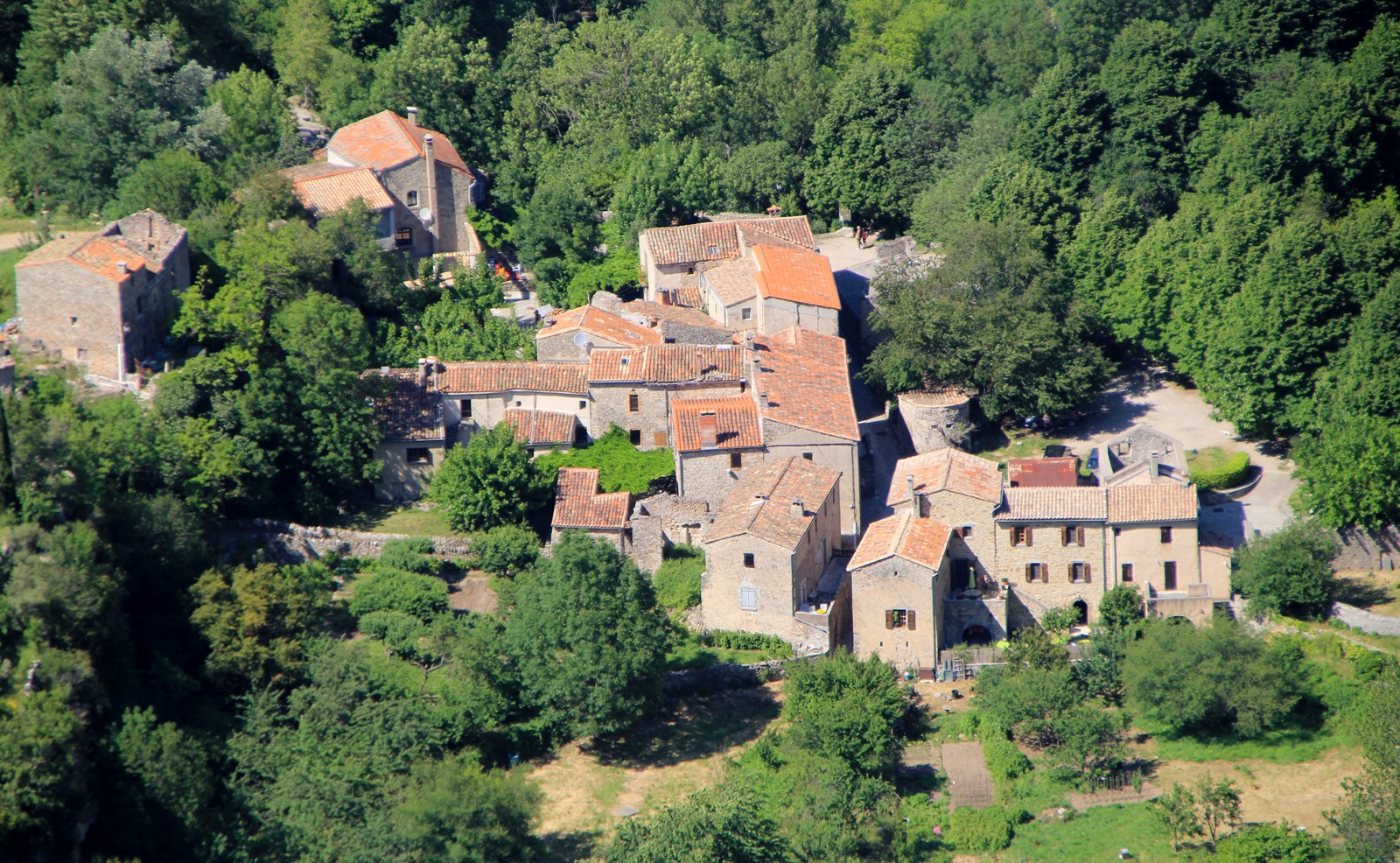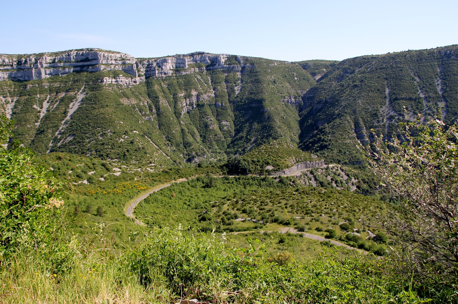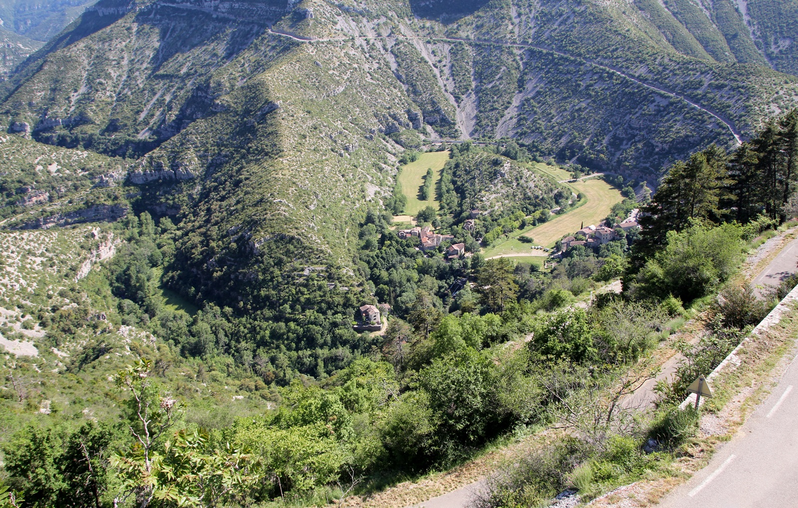 sich für uns ein Wunder der Natur. Von oben sieht das Ganze aus wie ein rießiges Dreieck. Der Cirque de Navavelle gehört zurecht zum Welterbe der UNESCO. Im Talgrund liegt noch ein kleiner Weiler mit ca. 165 Einwohnern. Auch wenn man es aufgrund zahlreicher ausgetrockneter Flussläufe in der Umgebung nicht vermutet, aber ein kleiner Bach fließt dort noch immer.