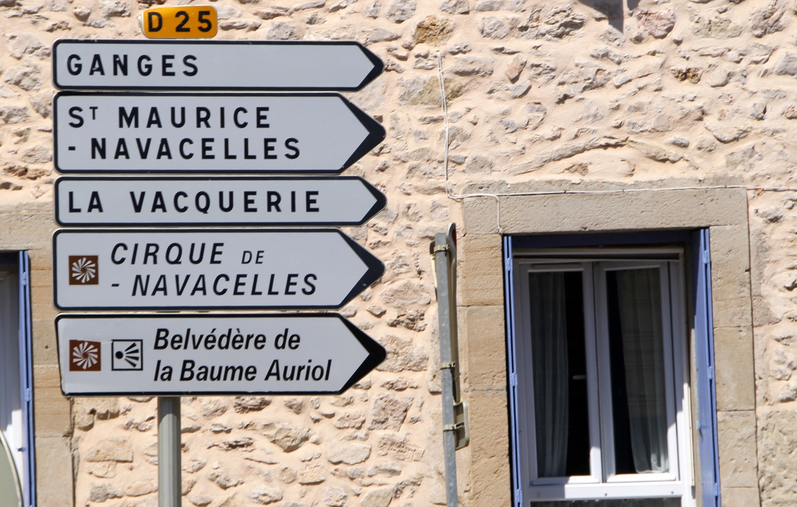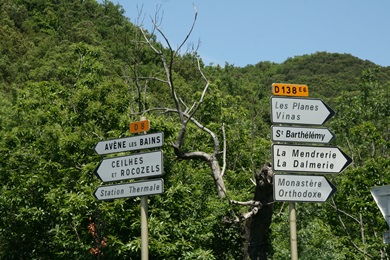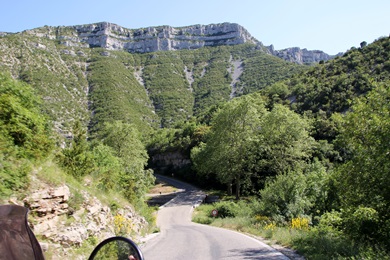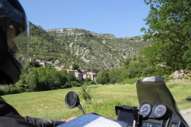 Über 400 Meter tief hat sich der Fluß Vis in die Karstlandschaft eingeschnitten. Im Talkessel der Schlucht befindet sich das kleine Örtchen Navacelles. Vom Aussichtspunkt La Baume-Ariol führt ein schmaler Weg hinunter nach Navacelles. Einige Häuser und ein Wasserfall werden von steilen Felshängen umschlossen - einfach genial. Das hätten wir nie vermutet und muss man gesehen haben. |