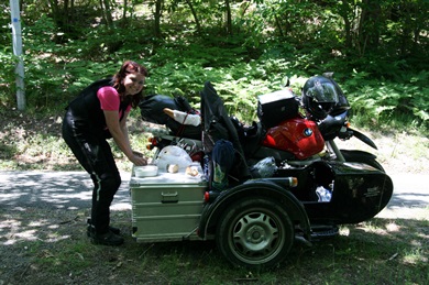 Rast im Nirgendwo an der D138E2 - Kiste wird kurzerhand zum Tisch umfunktioniert |