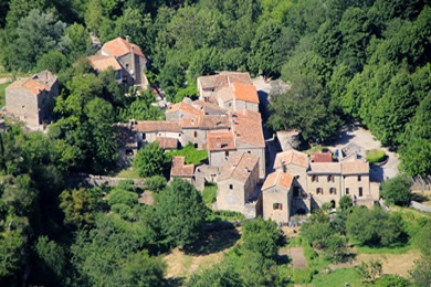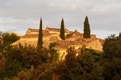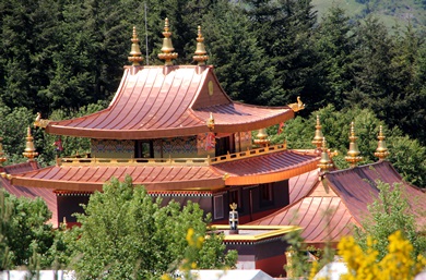 Was es alles so gibt.... plötzlich taucht ein tibetischer Tempel eingebettet zwischen den bewaldeten Hügeln in Roqueredonde auf. |