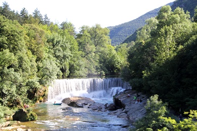 Wasserfall St. Laurent le Minier - viele Badegäste am Wasserfall...... |