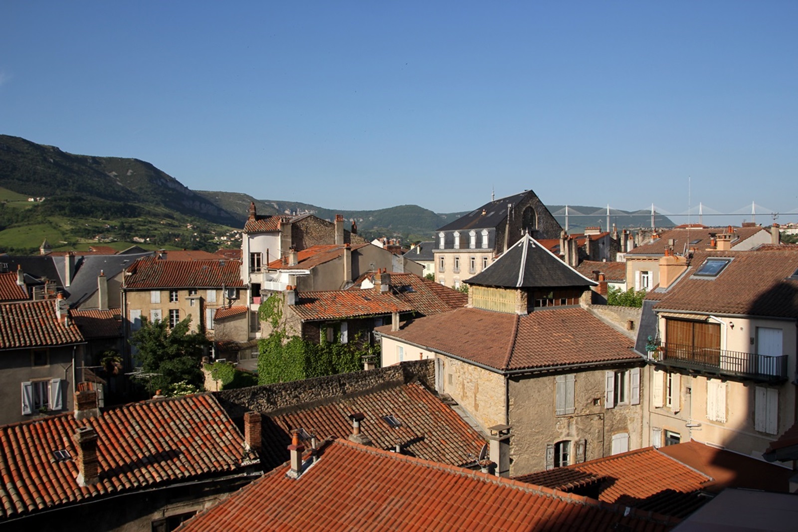 Blick vom Hotel Ibis in Millau. Von unserem Hotelzimmer konnte man auch die berühmte Millaubrücke sehen. Am Morgen streiften wir nochmal durch die Gassen von Millau. Millau hat etwa 22.000 Einwohner und liegt im Regionalen Naturpark Grands Causses, am Eingang der Tarnschlucht und zwar an jener Stelle, wo die Dourbie in den Tarn mündet. Daher lag es nahe, dass wir uns an diesem Tag für die Gorge Dourbie entschieden - von Schlucht zu Schlucht. |