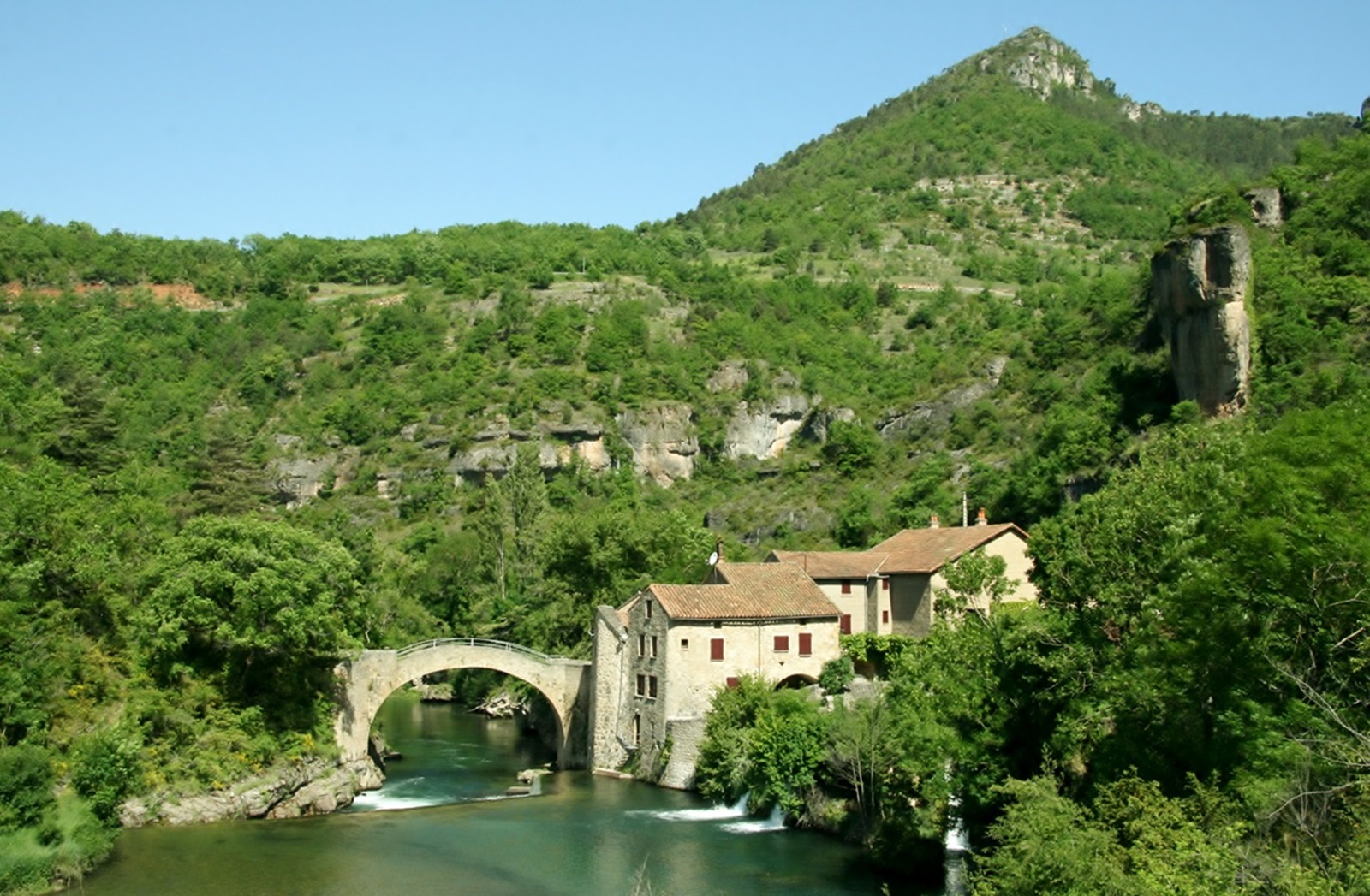 | Rast vor der Kulisse von Cantobre | Les Moulinets - viele Mühlen und interessante Anwesen entlang der Gorge de la Dourbie |