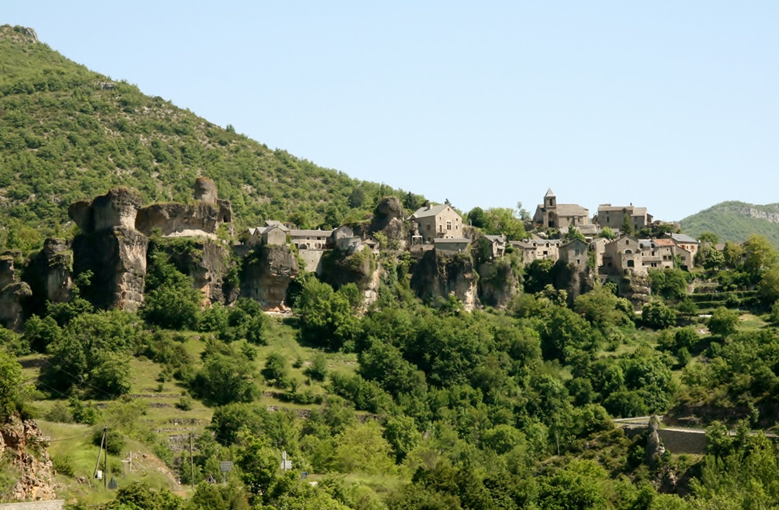 La Roque Sainte Marguerite eines der Dörfer an der Dourbie - ein hüpsches Dorf mit imposanter Kulisse D991. |