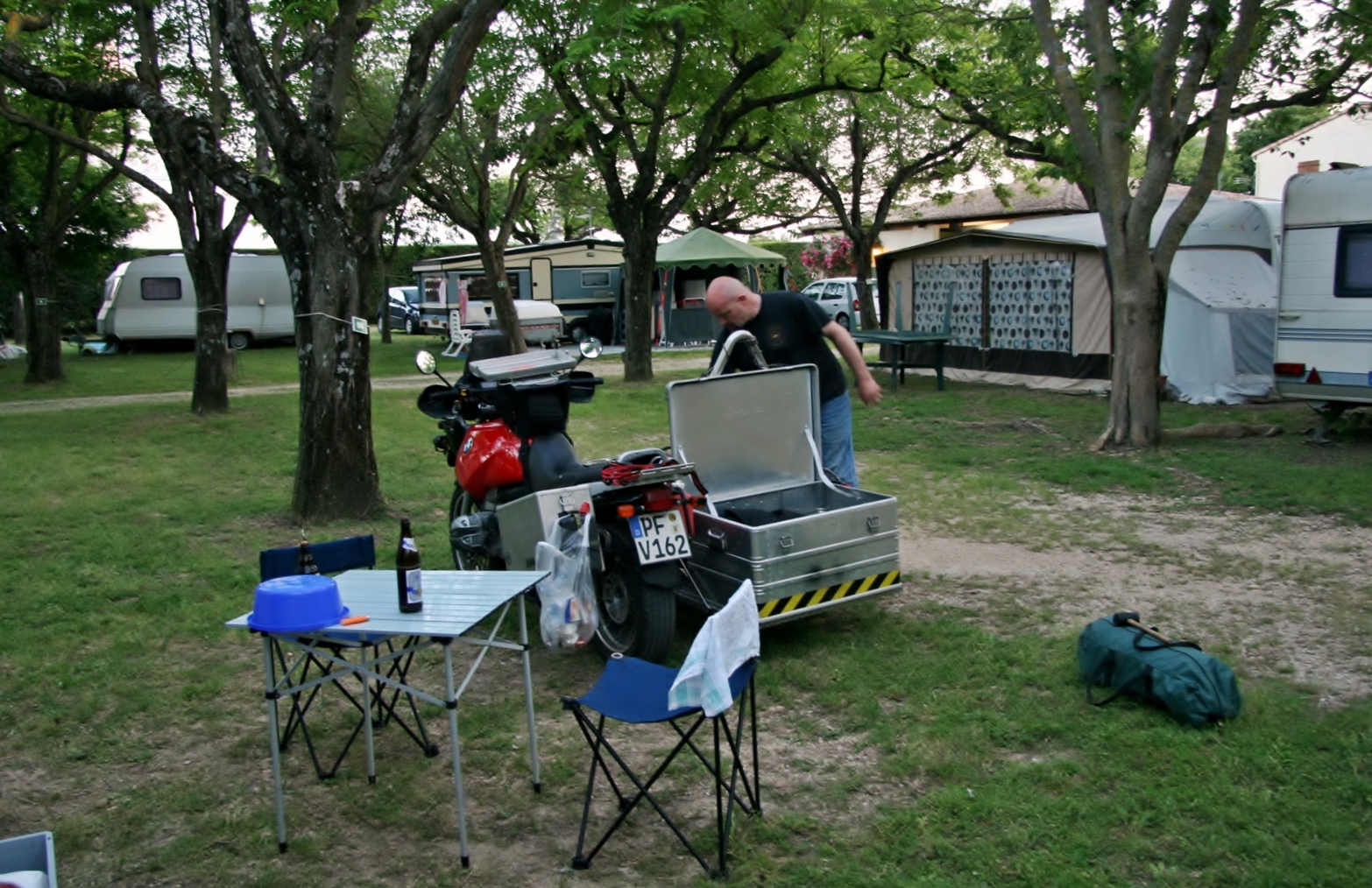 Es gab am Fuße der Burg Rastplätze mit Tischen und Bänken. Da wir fast die einzigen Gäste waren, hatten wir freie Auswahl. Wir verspeisten unser unterwegs eingekauftes Baguette mit Wurst, Käse, Oliven und Tomaten.