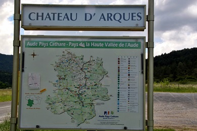 Die Burg steht zwar im Pays Cathare, gehört jedoch aufgrund ihrer späten Bauzeit nicht zu den Katharerburgen. Die Burg wurde einige 100m westlich des Ortes auf