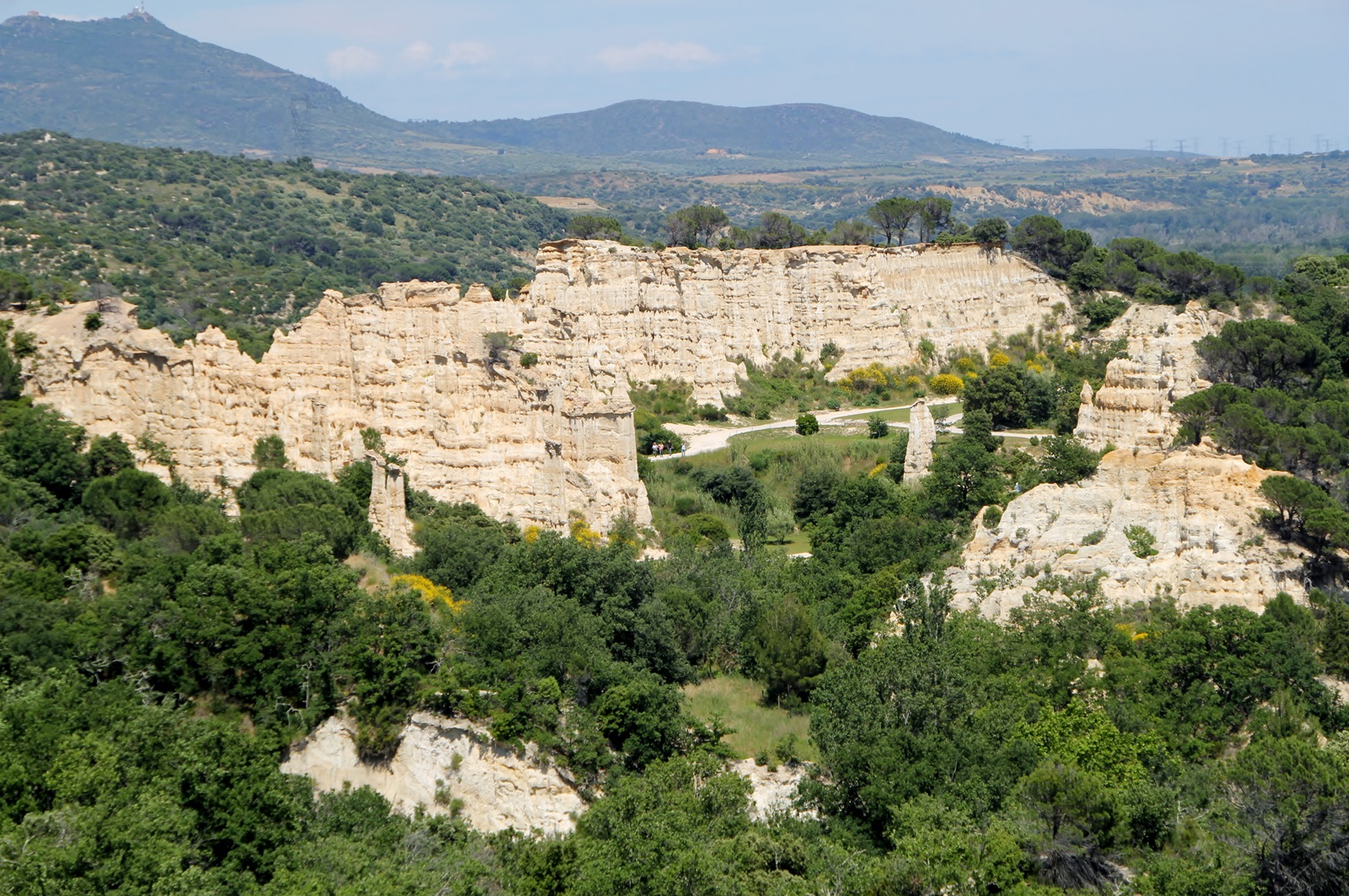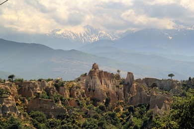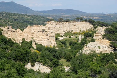 Am Rande des Ortes Ille-sur-tet befinden sich die Orgues (Orgelpfeifen), eine markante Gesteinsformation aus Sandstein und Ton. Die Felsen sind etwa fünf Millionen Jahre alt. Der Fluss Têt hat den Sandstein und Ton aus den Pyrenäen hier abgelagert und ein großes Plateau geformt.... und Regenwasser hat das Ganze ausgewaschen, wodurch sich die an Orgelpfeifen erinnernden Felsnadeln gebildet hatten. |