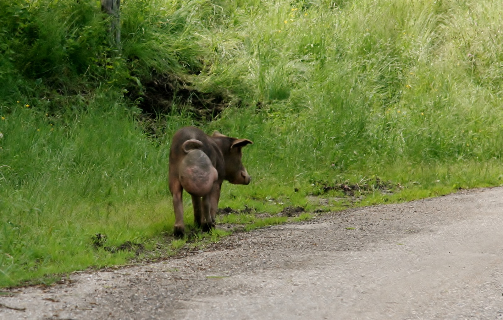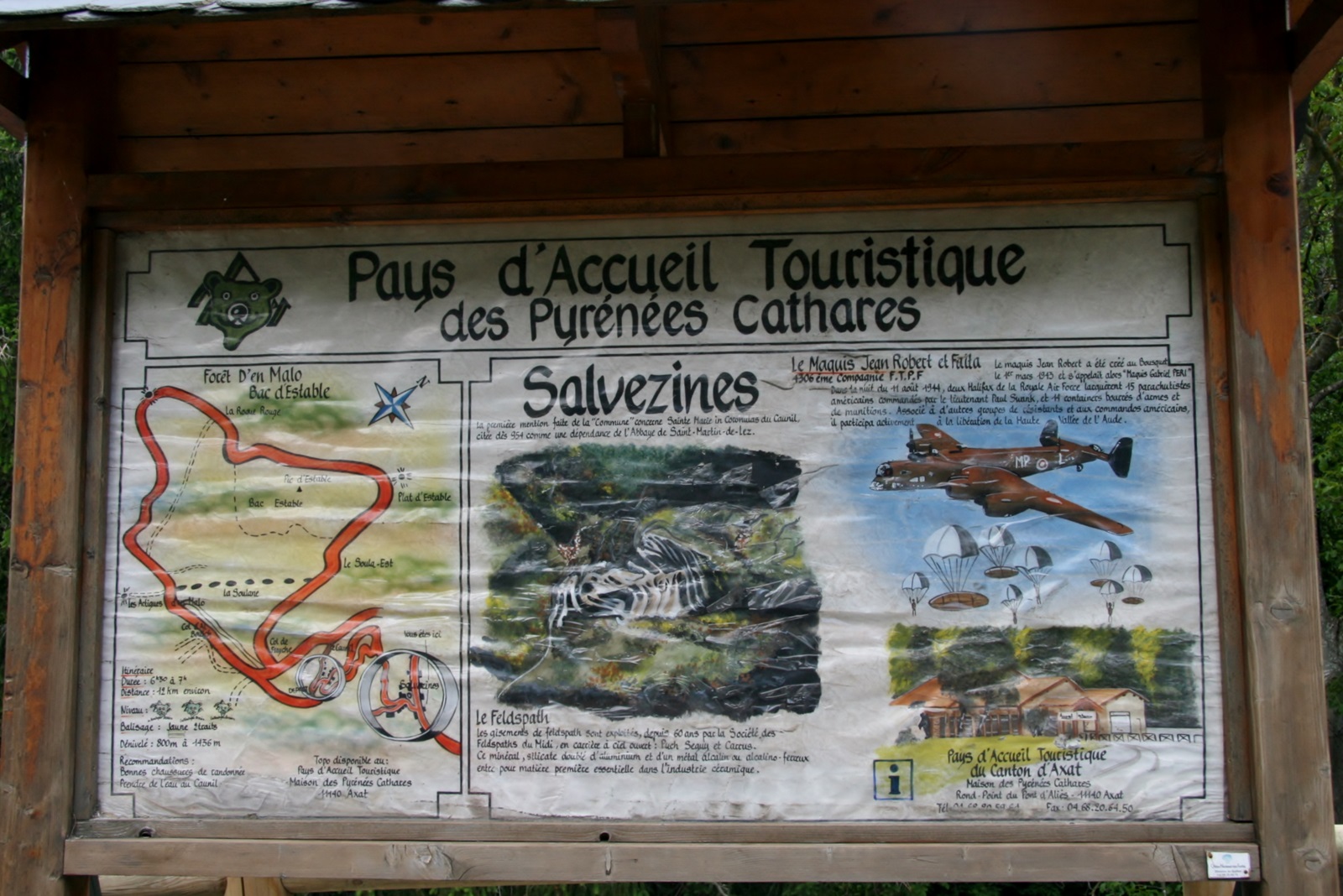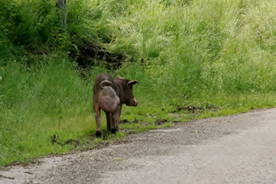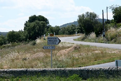 Salvezines ist ein kleines Dorf an der D22 mit ca. 70 Einwohnern. Ein Monument aus dem letzten Weltkrieg zeugt von den Gefallenen des Dorfes. | Am Straßenrand lief ein Schwein - sicherlich halbwild - mit einem großen Geschwür. Das arme Tier |