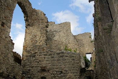 Vieles dem Lauf der Zeit überlassen. | Blick von der Burg nach Lapradelle. |