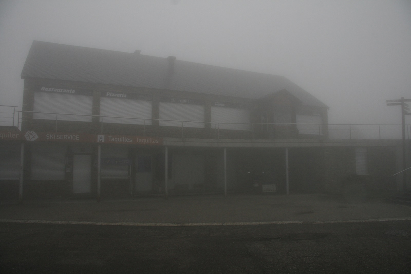 Als wir an der Auffahrt zum Port de la Bonaigua kamen, zog Nebel auf. Mit jedem Höhenmeter wurde die Suppe dicker und der Wind blies kälter. Bald konnte man nicht mal mehr die Hand vor den Augen sehen. Wir hatten den Vorteil, dass wir uns hier etwas auskannten. Wir wußten, dass es hier oben ein Restaurant gab - das allerdings an diesem Tag geschlossen war - und ein paar Meter weiter eine Skistation. An der Skistation fanden wir dann Unterschlupf, denn an eine Weiterfahrt war nicht zu denken. Es war viel zu gefährlich. Dank unserem Gespann hatten wir alles Lebensnotwendige dabei. Selbst Schlafsäcke für den äußersten Notfall. Dann warteten wir...... |