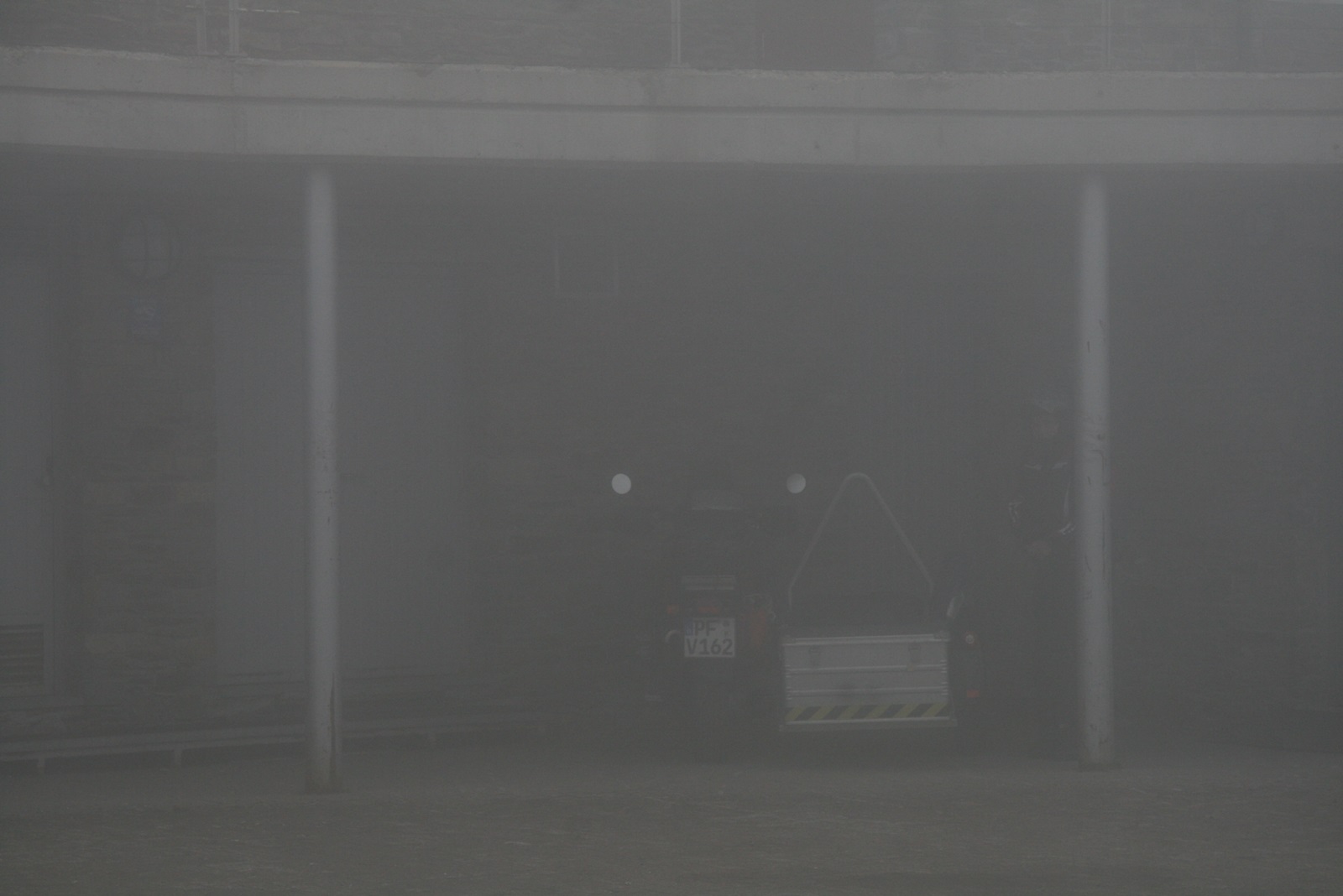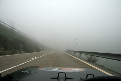 der Nebel lichtet sich etwas. Mittlerweile hatten wir uns einen Snack gerichtet um die Zeit etwas zu vertreiben.... | Der weitere Weg war wettertechnisch nicht viel besser. Es gab Wolken, die fast bis zum Boden reichten. |