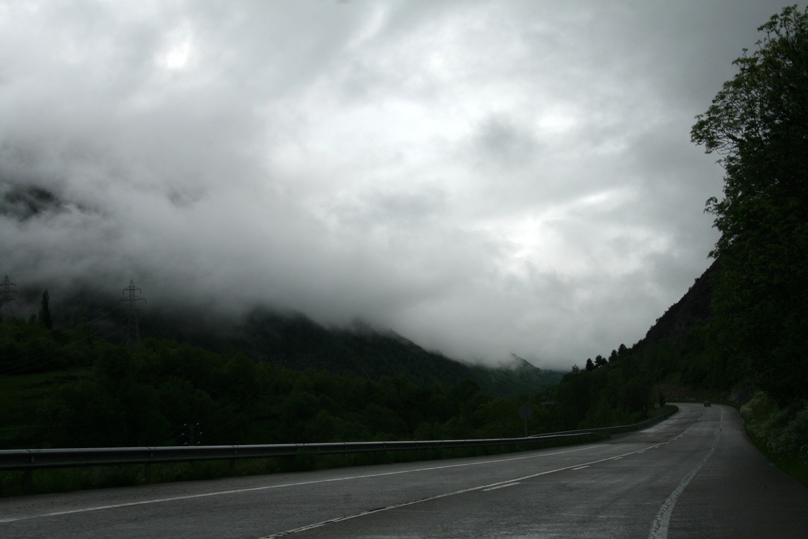 Einige Kilometer nach Viehla bogen wir ab auf die N141/D618a zum Pass Eth Porthilhon - auch Col du Portillon genannt. Es war eine verwunschene Straße mit viel Nebel, die dann irgendwann nach Bagneres-de-Luchon führte. Der Col du Portillon verbindet den Kur- und Wintersportort Bagnères-de-Luchon im Département Haute-Garonne mit dem spanischen Val d’Aran, der vielleicht ungewöhnlichsten Pyrenäenregion. Auf dem Scheitelpunkt ist auch die Grenze. |