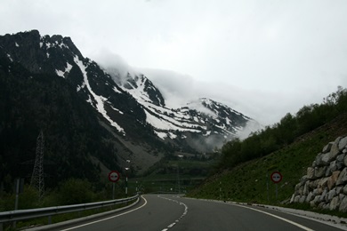 An diesem Tag fuhren wir nochmal den Coll del Canto (N260) und dann weiter Richtung Vielha. Die Landschaft genial, mit hohen Bergen ringsum, schönen Kurven mit gutem Straßenbelag und freundlichem gutem Wetter. Bis zum Fuße des Port de la Benaigua war die Welt noch in Ornung - doch dann..... |