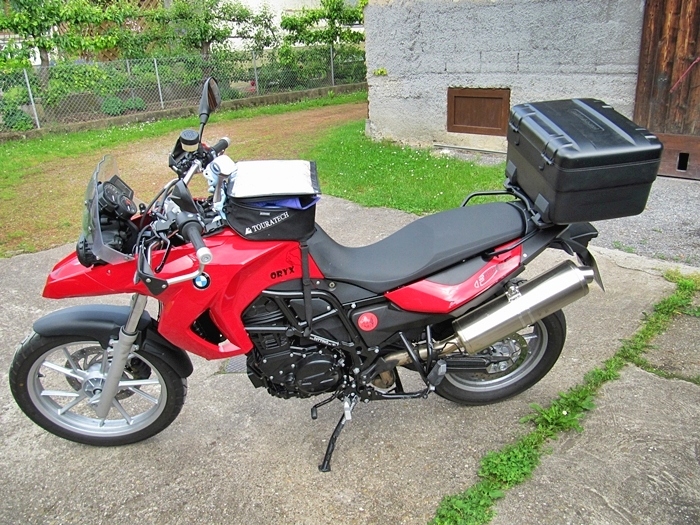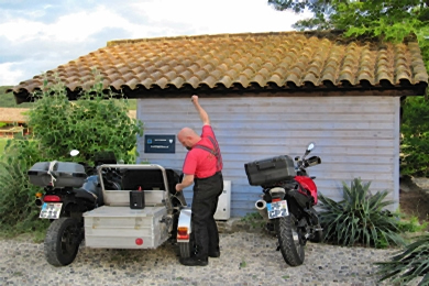 Der Tag der Abreise rückte rasch näher. Es gab noch viel vorzubereiten. Da wir den "Tiger" (Gespann) mitnehmen wollten, konnten wir auch mehr Gepäck transportieren. Am Abreisetag kamen wir leider später als geplant los und so endete unsere erste Etappe bereits nach ca. 200 km im Hotel "A La Demi Lune" in Issenheim im Elsass, einem Tourenfahrer Hotel. Wir durften unsere Fahrzeuge in einer Garage sicher unterstellen. |