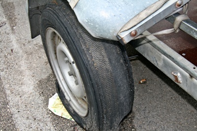 Profil vom Reifen fehlte und der Kotflügel weghing.