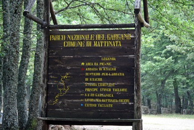 Mit dem Motorrad/Auto kann man den ca. 11 km² großen Laubwald aus Buchen, Ahorn und immergrünen Steineichen auf der beschaulichen Landstraße 528 zwischen Monte Sant'Angelo und Vico del Gargano befahren. Man kann auch unterwegs Richtung Vieste abbiegen. Dennoch ist nur ein kleiner Teil für des Waldes für motorisierte Fahrzeuge erschlossen. |