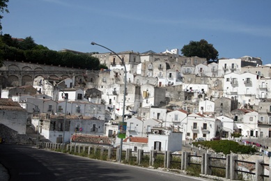 | Monte S.Angelo ist die höchste Stadt des Gargano. Sie liegt 850m über dem Meeresspiegel. Es wird durch die typischen neu gebauten Häuser und durch das mittelalterliche Viertel gekennzeichnet. Von Monte Sant Angelo aus hat man einen wunderschönen Blick auf die Ebene von Foggia (Tavoliere delle Puglie) und den Golf von Manfredonia. Die Stadt ist von Vieste aus durch den Foresta Umbra oder über die Küstenstraße via Mattinata zu erreichen. | |||