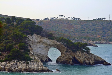 Ein Felsbogen in der Bucht von San Felice in der Nähe