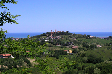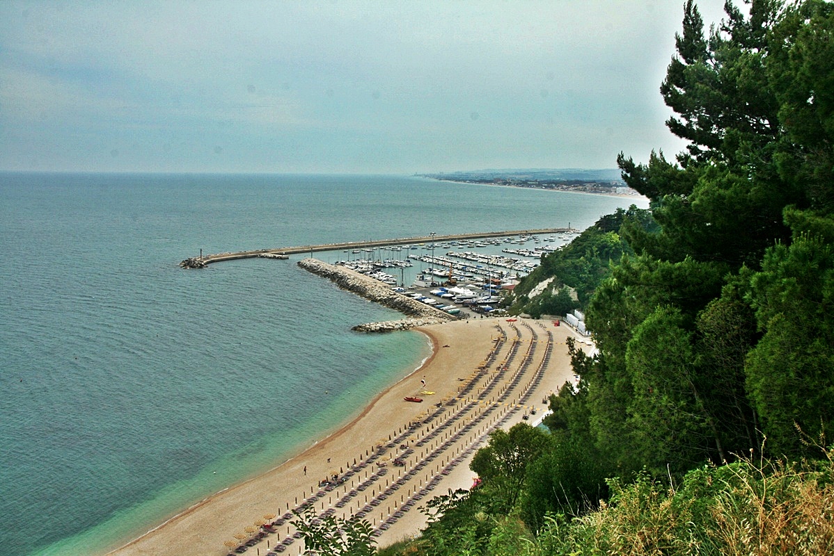 Der im rechten Winkel zum Meer aufragende Berg Monte Conero stellt mit seinen 572 Metern die einzige wirkliche Unterbrechung der flachen Adriaküste dar. |