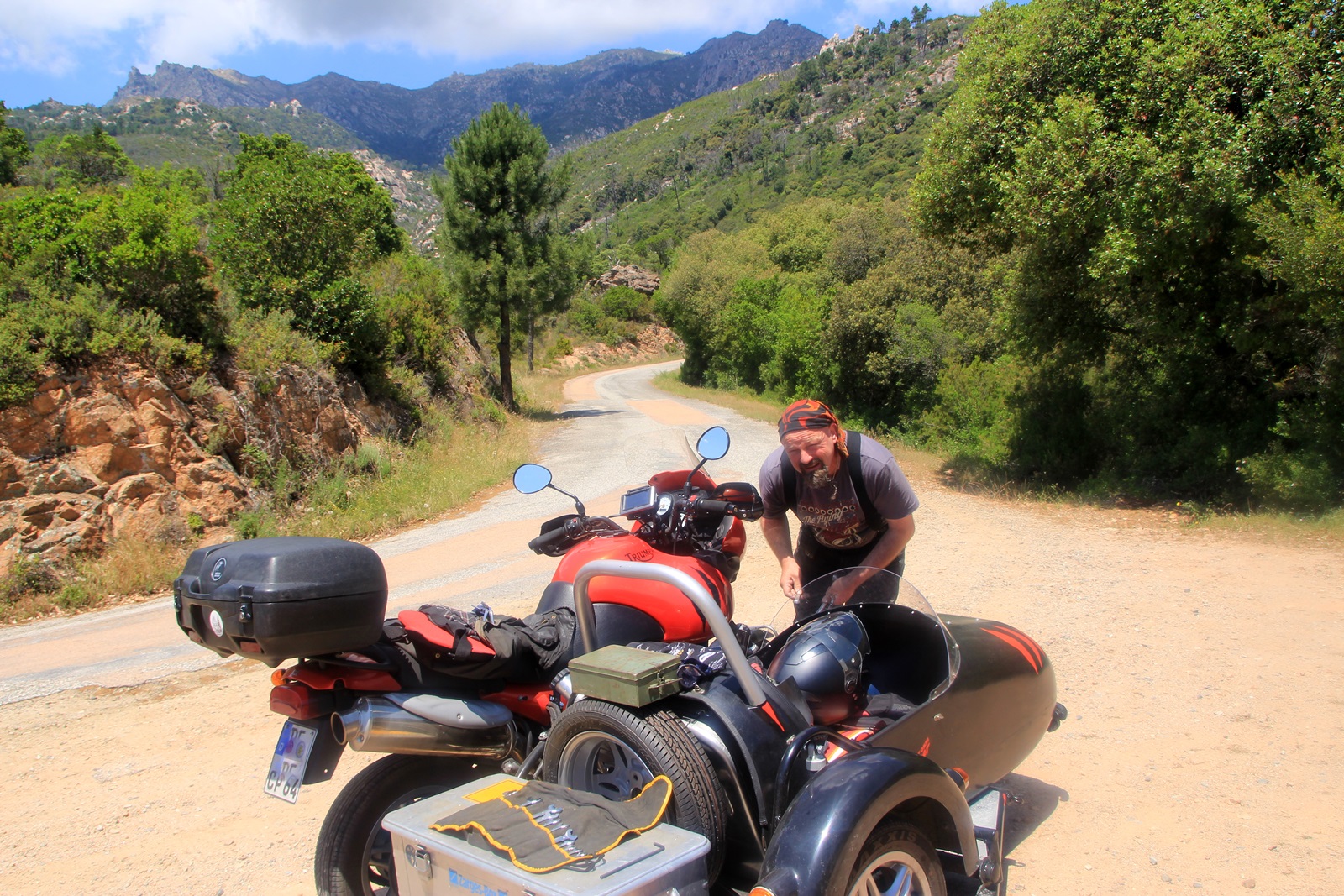 D557 - unser Parkplatz - Jochen überprüft die Tiger |