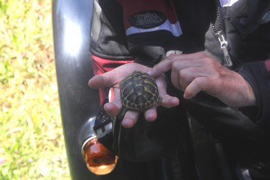 D69 - Jochen rettete eine kleine Schildkröte, die die Straße überqueren wollte |