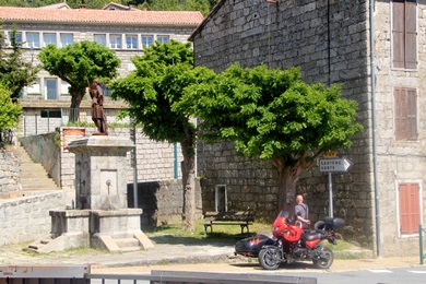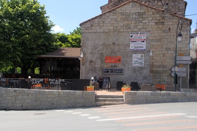 Cafe la Relax in Aullene, nette Athmosphäre gute Sandwiches. Die gegenüber liegende Dorfkirche stammt aus dem 17.Jh |