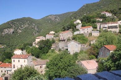 Aullene - auf 850 m Meereshöhe gehört zu den größeren Orten der Alta Rocca. Der Bergtourismus hat die malerischen Steinhäuser dieses Gebirgsdorfs bisher links liegen lassen. Man sagt hier werden die Einwohner aufgrund des gesunden Klimas hier besonders alt.