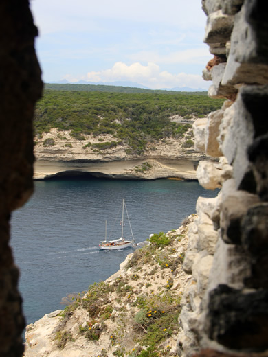 Ausblicke von der Festung und zu dem Eingang der fjordartigen Bucht von Bonifacio. |