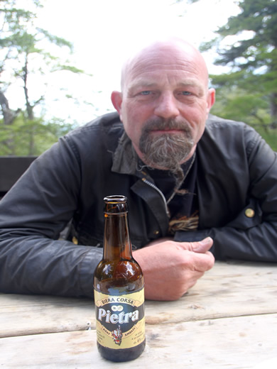 Oben angekommen, sahen wir eine schön gelegene Ferme Auberge - ich glaube sie hieß Refugio S. Petro di Verde. Ein idealer Übernachtungsort für Wanderer und Naturliebhaber. Wir beschlossen dort das bekannte Bier "Pietra" zu testen. Das Bier war lecker; der Preis war dann ernüchternd.