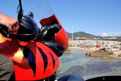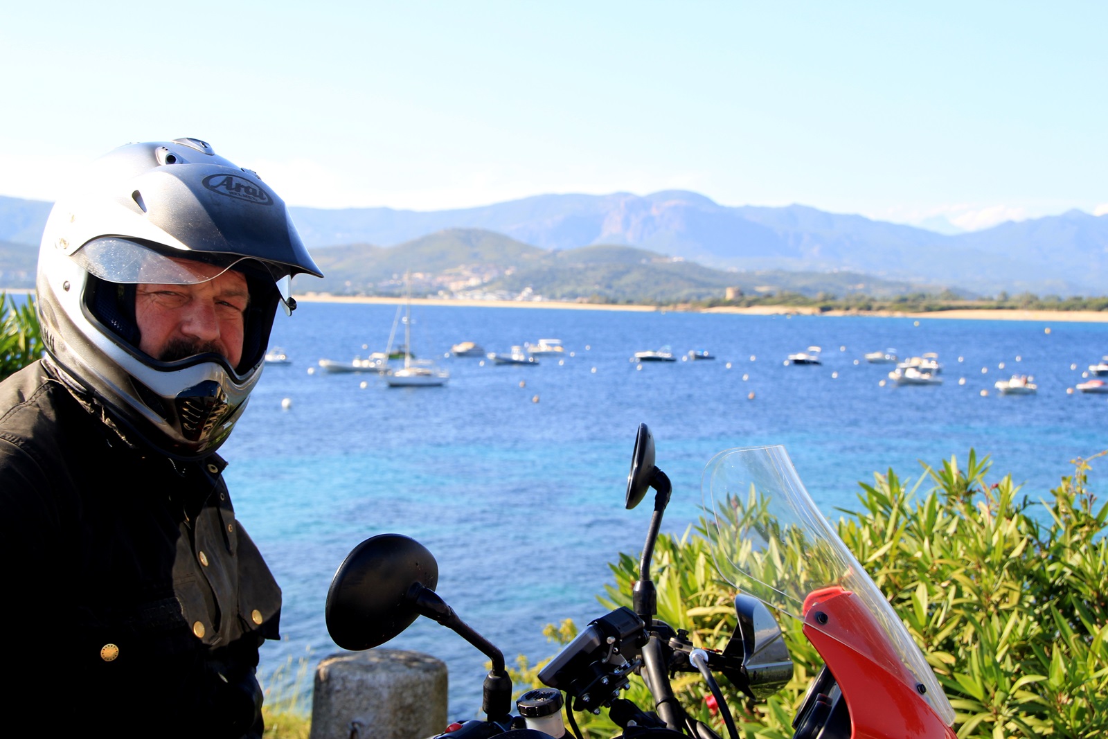 Gestern waren onwir den ganzen Tag fast ohne Pause gefahren. Die Strecke war zum Teil anstrengend. So beschlossen wir den heutigen Tag ruhig angehen zu lassen. Nach einem gemütlichen Frühstück auf der Terrasse unseres Bungalows mit Blick auf den Hafen und die Bucht von Propriano, beschlossen wir nur eine kleine Runde zu fahren. Wir fuhren zunächst nach Propriano rein, schlenderten durch die Gassen und besuchten den Hafen und den Leuchtturm. Ich machte es mir im Seitenwagen gemütlich. Ein herrlicher Tag. |