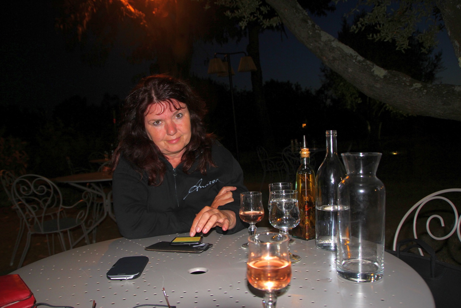 Propriano - Campingplatz Restaurant. Wieder leckeres Essen mit einem guten Rose hmmmm und nebenbei noch Mails checken - WLan funtioniert nur an der Rezeption/Restaurant |