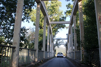 Stahlbrücke - Einbahnstraße gerade mal 2m breit. Mit unserem WOMO hätte die Fahrt wieder Adrenalin erzeugt. |