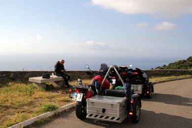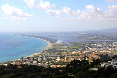 Städte Bastia und St. Florent im Norden Korsikas auf kürzestem Wege miteinander. Auf 536m hat man auf der einen Seite die Aussicht auf Bastia und auf der anderen Steite nach St. Florent. |