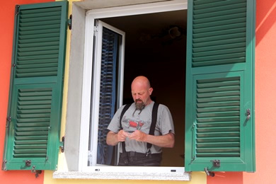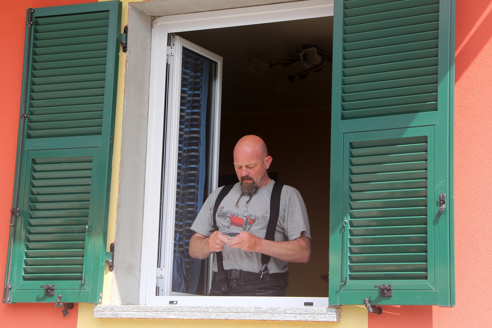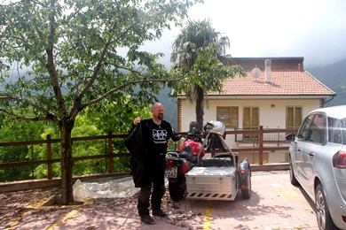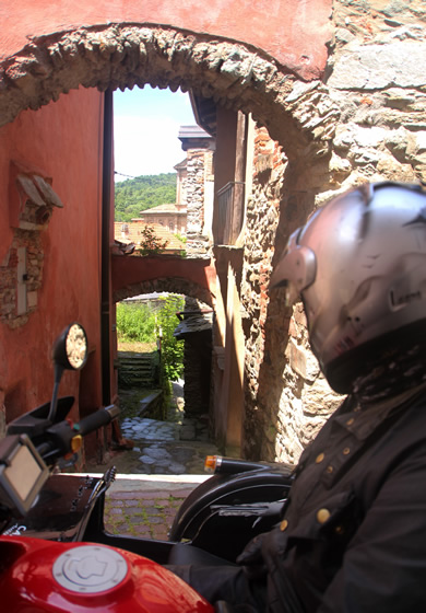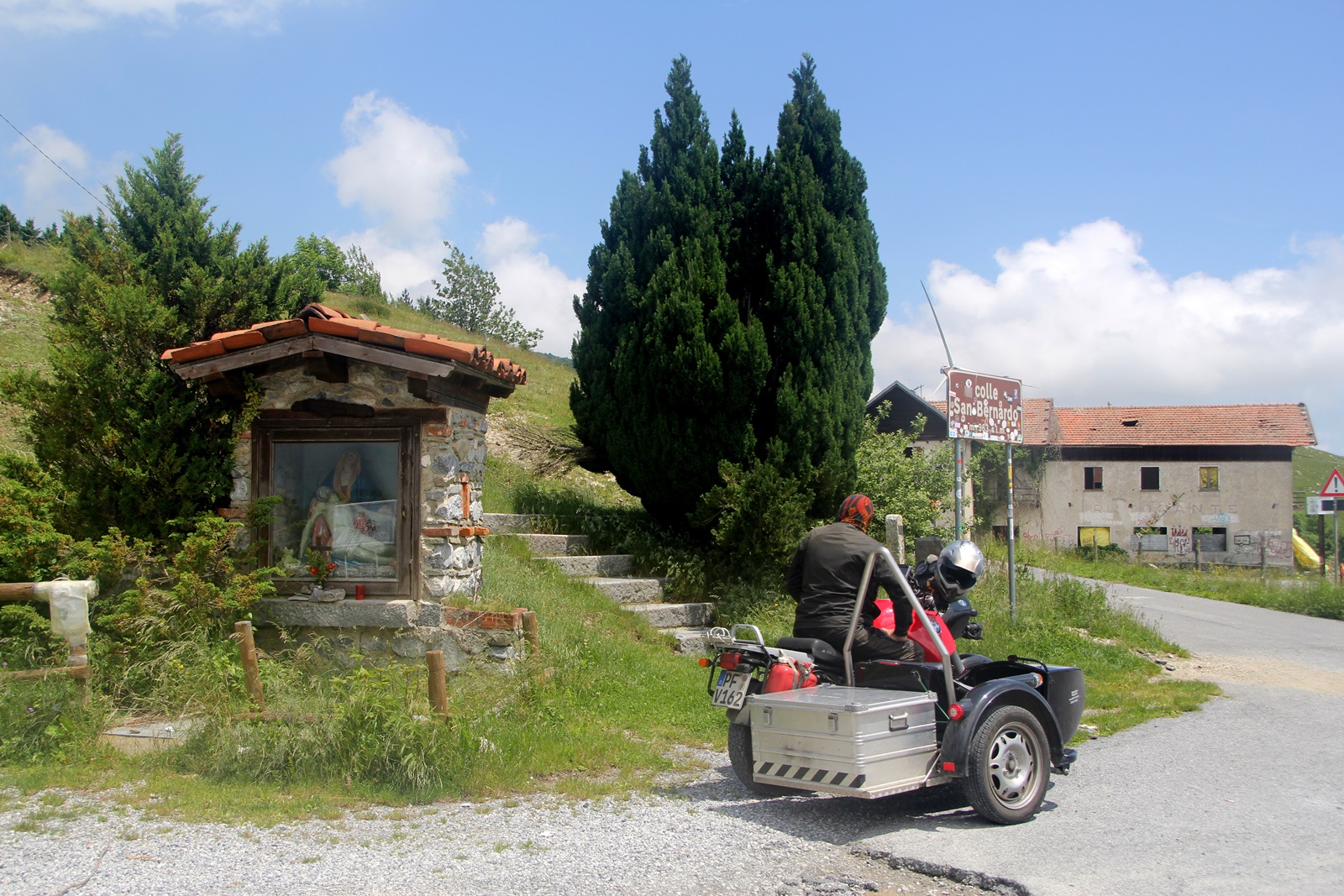 Hier in Castelvecchio di Rocca Barbena hatte ich mir das erste Mal einen Rückwärtsgang gewünscht. Das Navi führte uns mitten in die Altstadt rein und es sollte auf der anderen Seite auch wieder einen Weg rausgehen ...leider nein. Die Straße war eng und zugeparkt und ich sollte wenden! Irgendwie stand ich ungeschickt. Ein netter Einheimischer half mir freundlicherweise das Gespann zu schieben. Dafür war ich ihm sehr dankbar. |