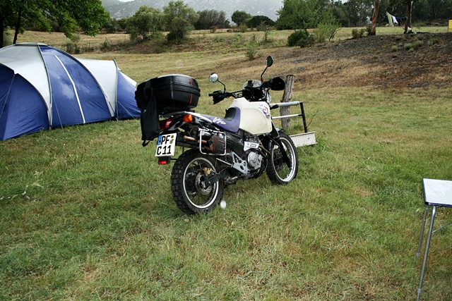 reisefertig gepackt und die Honda hintendrauf