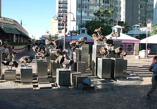 Unser erster Weg führte uns in die gebuchte Unterkunft Pension Handke im Herzen Windhoeks um unser Gepäck loszuwerden und etwas auszuruhen. Doch die Neugierde siegte. Nach einer erfrischenden Dusche machten wir uns zu Fuß auf ins Zentrum von Windhoek. Jeder Laden und jedes Geschäft war interessant. Überrascht waren wir von dem vielfältigen Angebot in den Supermärkten. Das Angebot konnte mit jedem Supermarkt in Deutschland mithalten - vorallem gab es viel von Maggi und Knorr fast wie zuhause. Die Zeit verging wie im Flug.