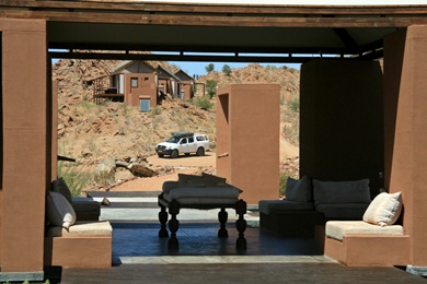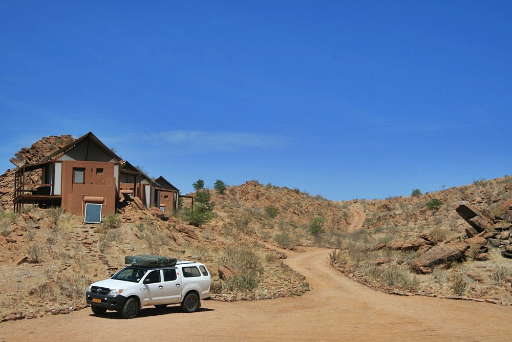 Luxuscamp Serra Cafema, die Kulisse für manche Modeaufnahmen. Wer hier her kommt zum Übernachten wählt nicht den PKW als Reisemittel |