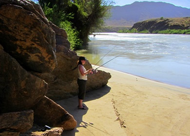 Andrea beim Angeln - mit Abstand zum Wasser |