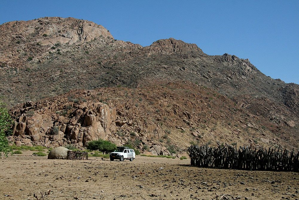Es war eigentlich viel zu heiß für Aktivitäten in der prallen Sonne. Doch die Verlockung war zu groß. Es war selten ein verlassenes Himbadorf anzutreffen und in Ruhe besichtigen zu können. |