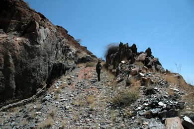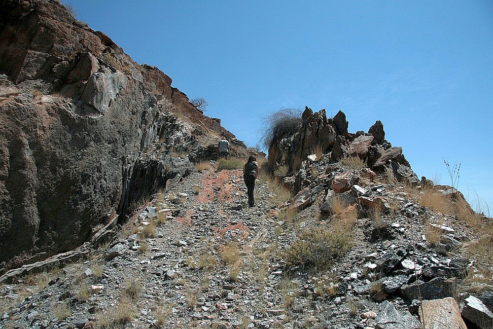 Der Aufstieg zur Mine - überall sah man die glitzernden Mineralien herumliegen. |