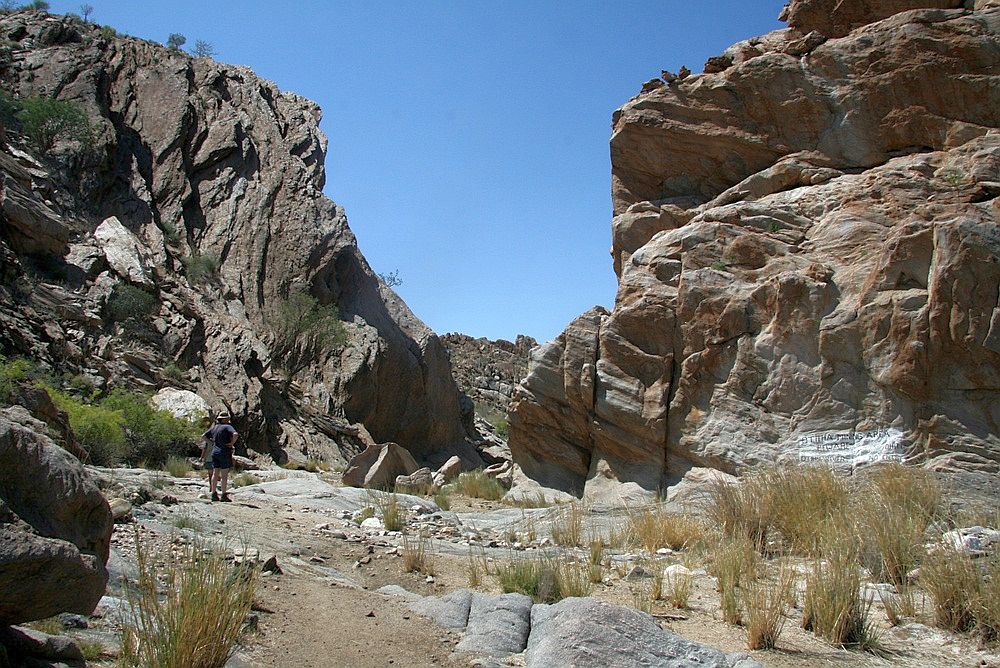 Marius schenkte den Kindern zwei Brote. Sie freuten sich rießig und dann erzählten sie Marius stolz, dass es hier in der Nähe eine Quelle mit frischem Wasser geben sollte..... und diese wollten wir jetzt natürlich suchen gehen. Wir fuhren bis zum beschriebenen Punkt wo man mit den Auto nicht mehr weiterkam und suchten dann zu fuß in der Schlucht und zwischen den Felsen. Es dauerte eine Weile, aber dann hatten wir Glück. |